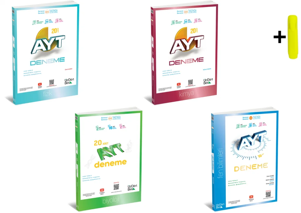 ÜçDörtBeş Yayınları AYT Fizik Kimya Biyoloji 20’li Deneme Yeni